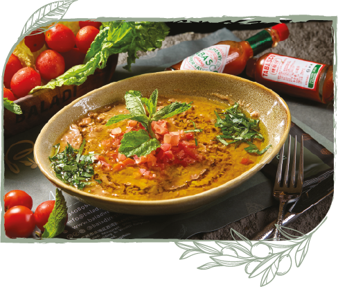 Fresh mix of parsley, dry mint, tomatoes, served with lemon oil sauce. | 新鮮的歐芹、乾薄荷、番茄的混合物, 配檸檬油醬